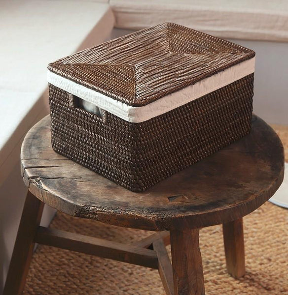 Storage Baskets for Clothes, Large Brown Rattan Storage Baskets, Storage Baskets for Bathroom, Rectangular Storage Baskets, Storage Basket with Lid