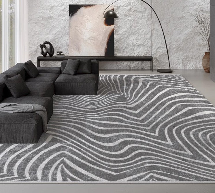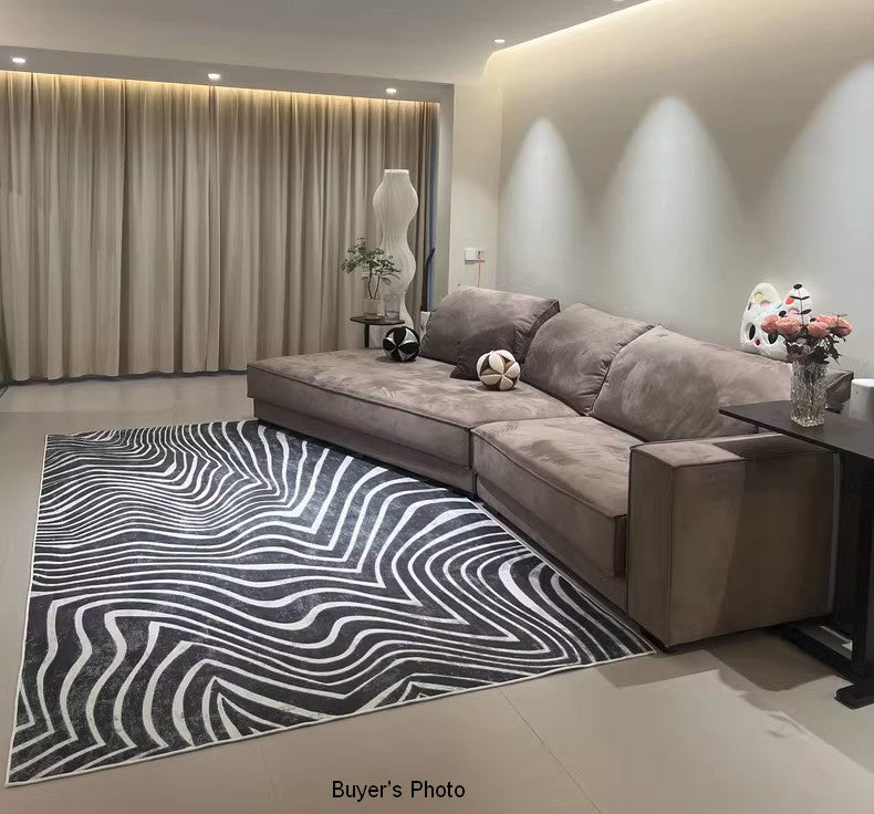 Black Stripe Area Rugs under Sofa, Mid Century Area Rugs for Living Room, Abstract Contemporary Rugs for Bedroom, Modern Carpets for Office, Dining Room Floor Rugs