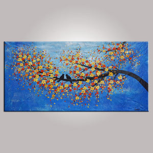 Abstract Art, Contemporary Wall Art, Flower Painting, Love Birds Painting, Art for Sale, Abstract Art Painting, Dining Room Wall Art, Canvas Art-Paintingforhome