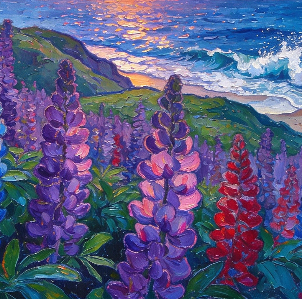 Seaside Lupines in Bloom, Heavy Texture Paintings, Original Small Landscape Paintings, Small Oil Paintings on Canvas, Small Paintings on Canvas, Hand Painted Canvas Art