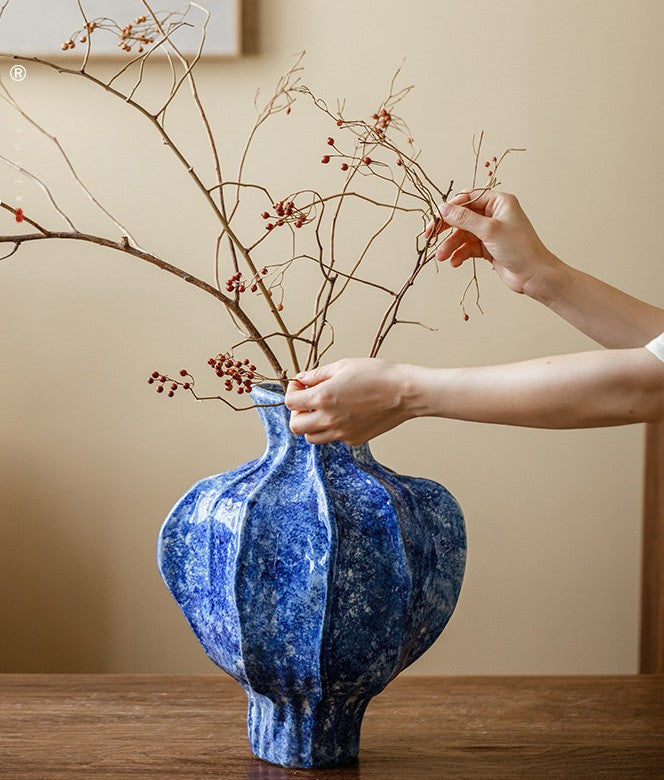 Handmade Water Holding Flower Vases, Centerpiece on Dining Table, Blue Ceramic Bud Vases, Tall Flower Vases on Table, Modern Pottery Flower Vases