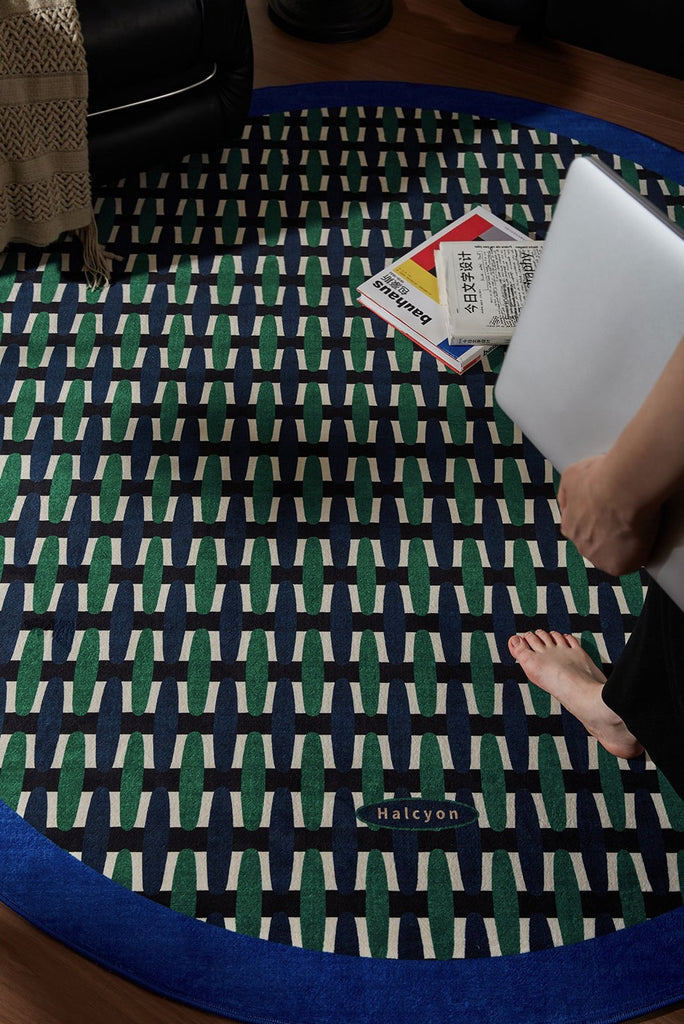 Mid Century Circular Rugs for Bedroom, Modern Rugs for Dining Room, Abstract Contemporary Round Rugs under Chairs, Geometric Modern Rugs for Living Room