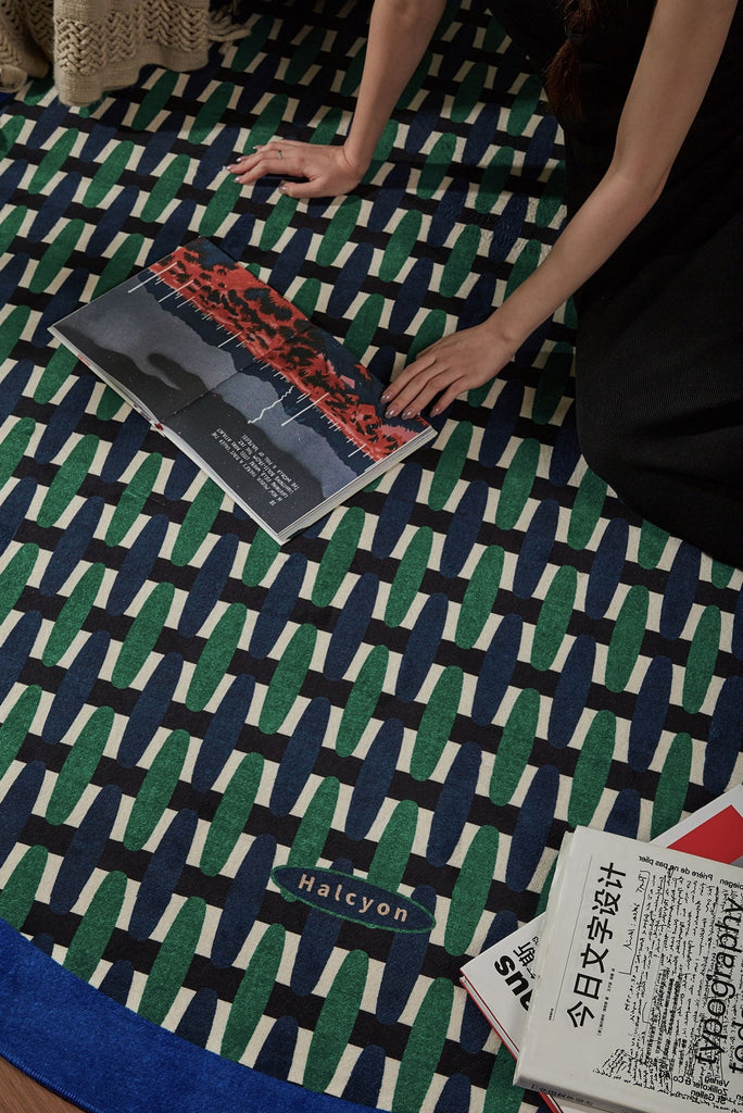 Abstract Contemporary Round Rugs under Chairs, Mid Century Circular Rugs for Bedroom, Modern Rugs for Dining Room, Geometric Modern Rugs for Living Room