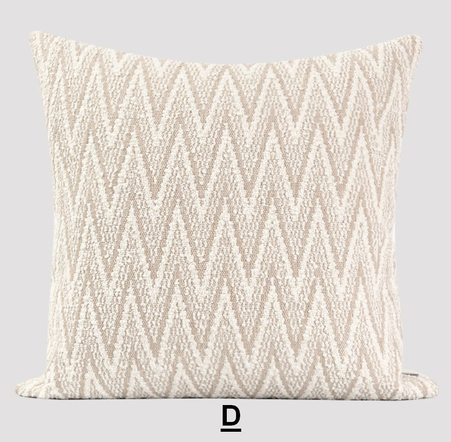 All pillow covers are sewn professionally, over-locked with finished edges to prevent fraying and has invisible zipper enclosures. This provides long lasting, durable covers that will stay straight and beautiful over time, which makes for a clean professional look.