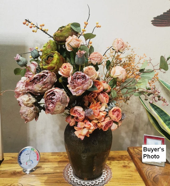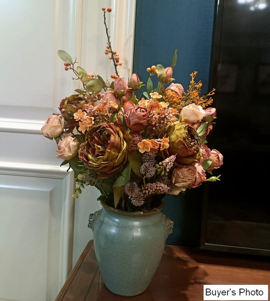 Large Faux Silk Floral Bouquet, Beautiful Peony Rose Flowers Arrangement Interior Design, Modern Artificial Floral Arrangement for Living Room