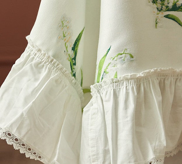 Cotton Embroidery Lace Rectangle Tablecloth for Dining Room Table, Farmhouse Table Cloth, Spring Flower Pattern Tablecloth, Square Tablecloth for Round Table