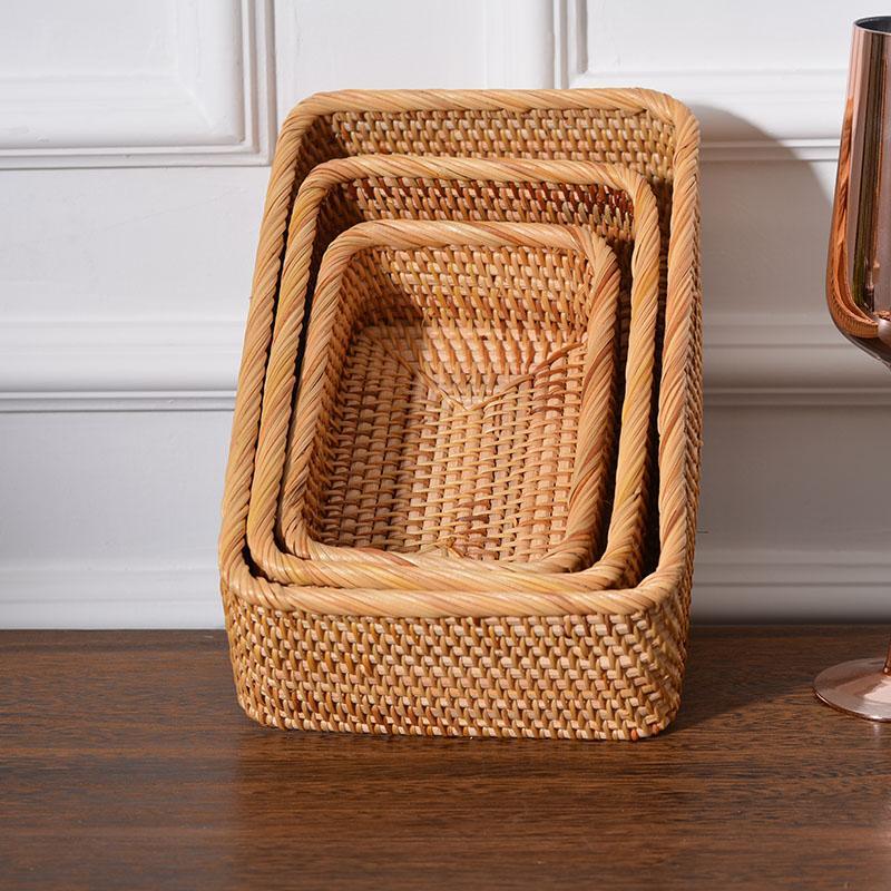 Rectangular Storage Baskets, Storage Baskets for Shelves, Woven Rattan Storage Basket, Kitchen Storage Baskets, Bathroom Storage Baskets-Paintingforhome