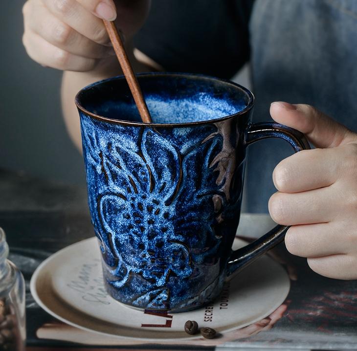 Ceramic Coffee Mug, Stoneware Coffee Mugs, Large Capacity Coffee Cups, Birthday gifts, Large Handmade Pottery Coffee Mug, Blue / Yellow / Green / Brown