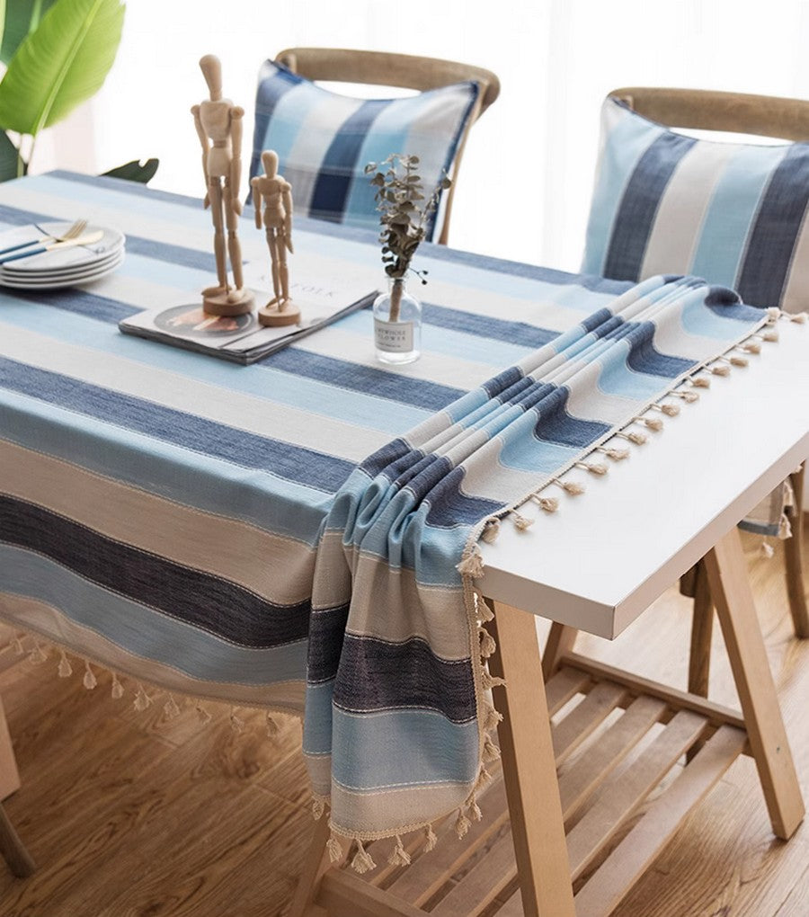 Blue Stripe Rectangular Tablecloth for Oval Table, Cotton and Linen Tablecloths, Rectangular Table Covers for Coffee Table, Modern Table Cloths for Dining Room