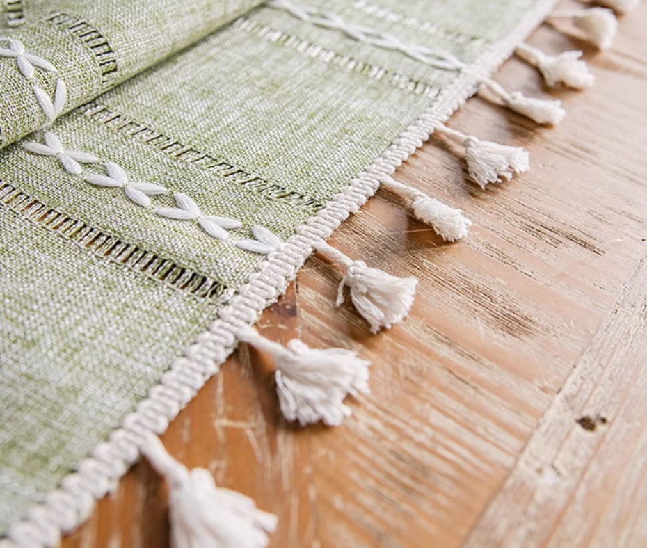 This unique natural flax table cloth is suitable for dining table, tea table, piano cover, bedstand, etc.