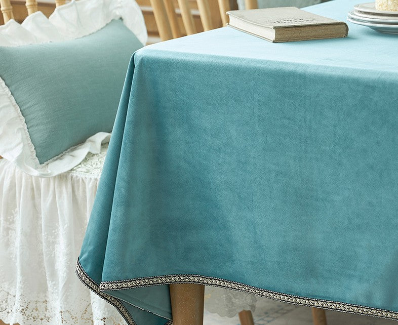 Ramie Velvet Rectangle Tablecloth for Home Decoration, Blue Square Tablecloth for Round Table, Modern Blue Table Cloth for Dining Room Table