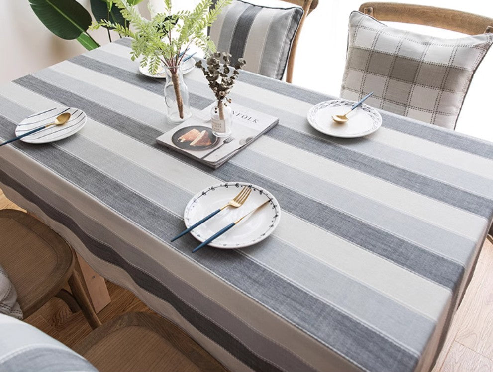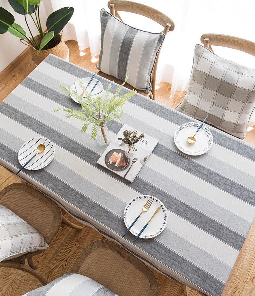 Rectangular Table Covers for Coffee Table, Modern Table Cloths for Dining Room, Gray Stripe Rectangular Tablecloth for Oval Table, Cotton and Linen Tablecloths