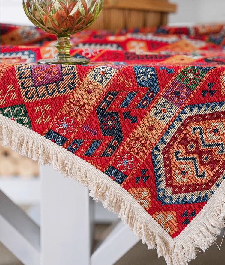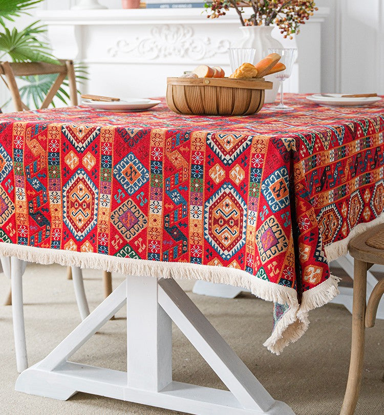 Bohemian Rectangular Tablecloth for Oval Table, Oriental Rectangular Table Covers for Coffee Table, Large Modern Linen Tablecloths-Paintingforhome