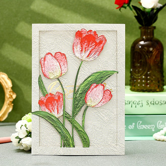 Creative Birthday Greeting Card, Tulip Flower Greeting Cards, Beautiful Greeting Cards to Friends, Original Handmade Greeting Cards