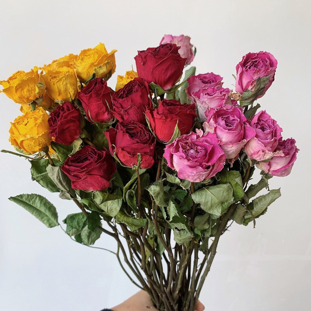 Dried Rose Floral Bouquet, Dried Rose Flowers, Natural Dried Rose Flower Bunches, A Bunch Dried Rose Flowers, Red Yellow Purple Dried Rose Flowers