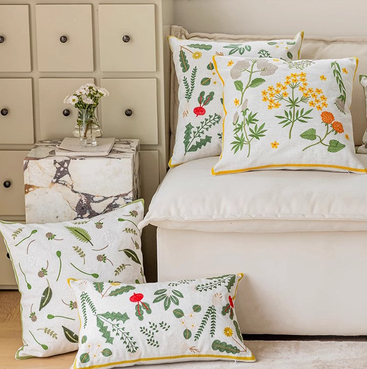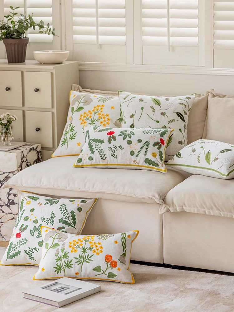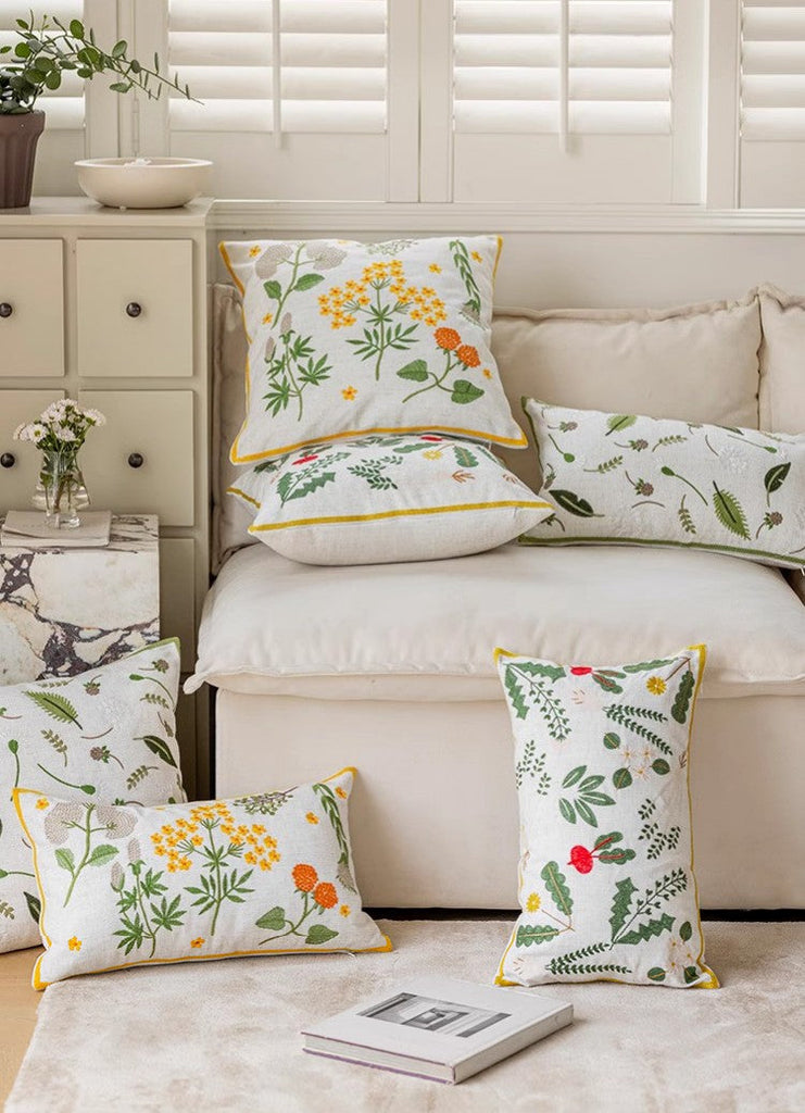 Farmhouse Sofa Decorative Pillows, Embroider Flower Cotton Pillow Covers, Spring Flower Decorative Throw Pillows, Decorative Pillows for Couch-Paintingforhome
