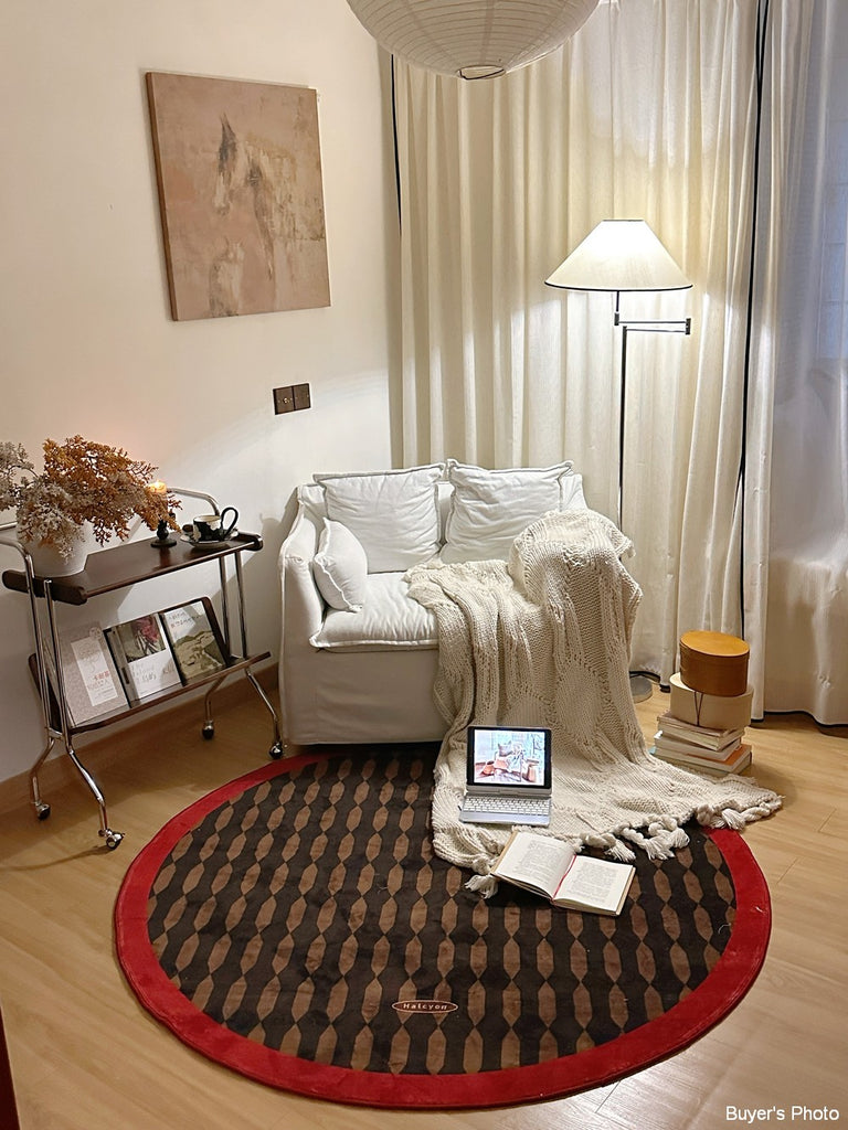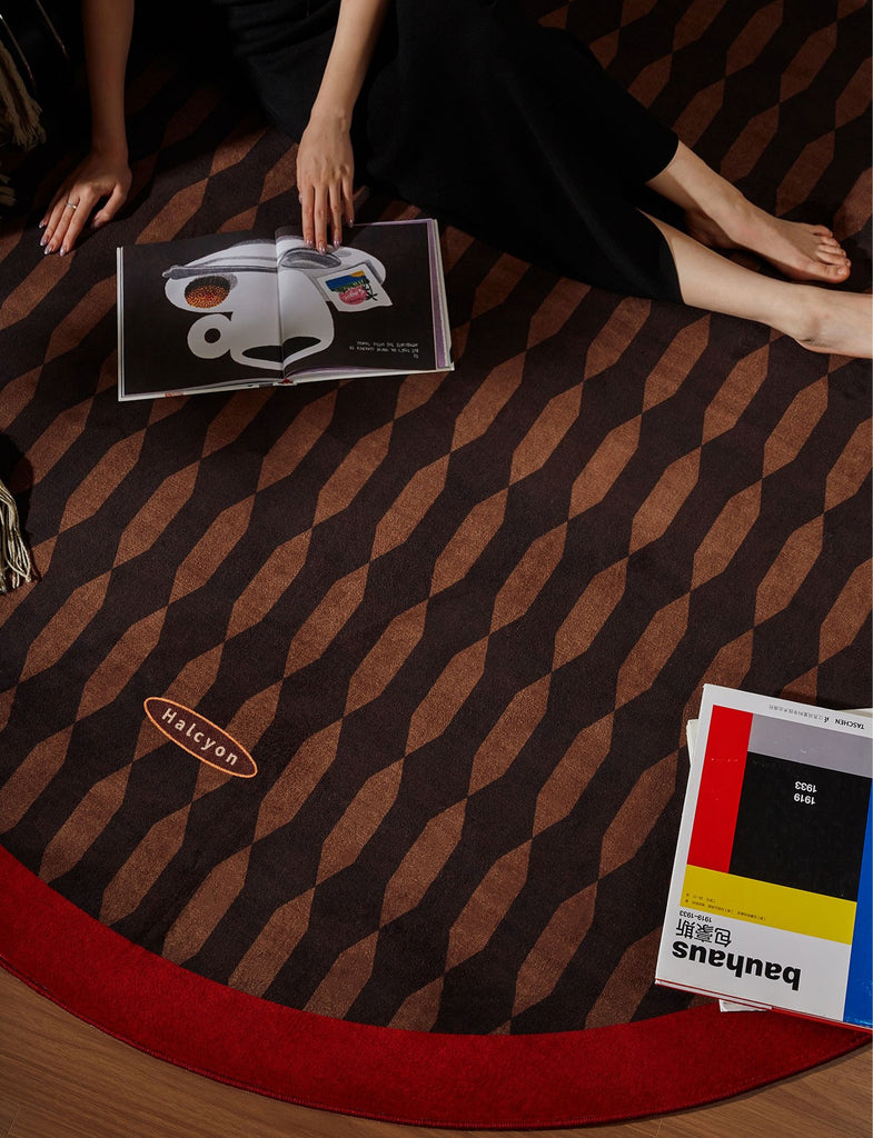 Mid Century Circular Rugs for Bedroom, Modern Rugs for Dining Room, Abstract Contemporary Round Rugs under Chairs, Geometric Modern Rugs for Living Room