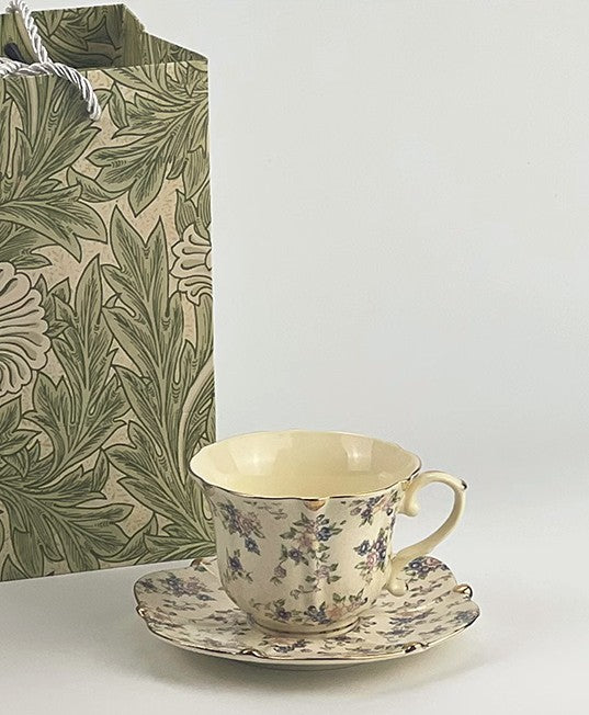 British Traditional Afternoon Tea Cup and Saucer in Gift Box, 7.8 oz Porcelain Tea Cup Saucer Set, Unique Tea Cup and Saucers, Royal Ceramic Cups, Elegant Vintage Ceramic Coffee Cups
