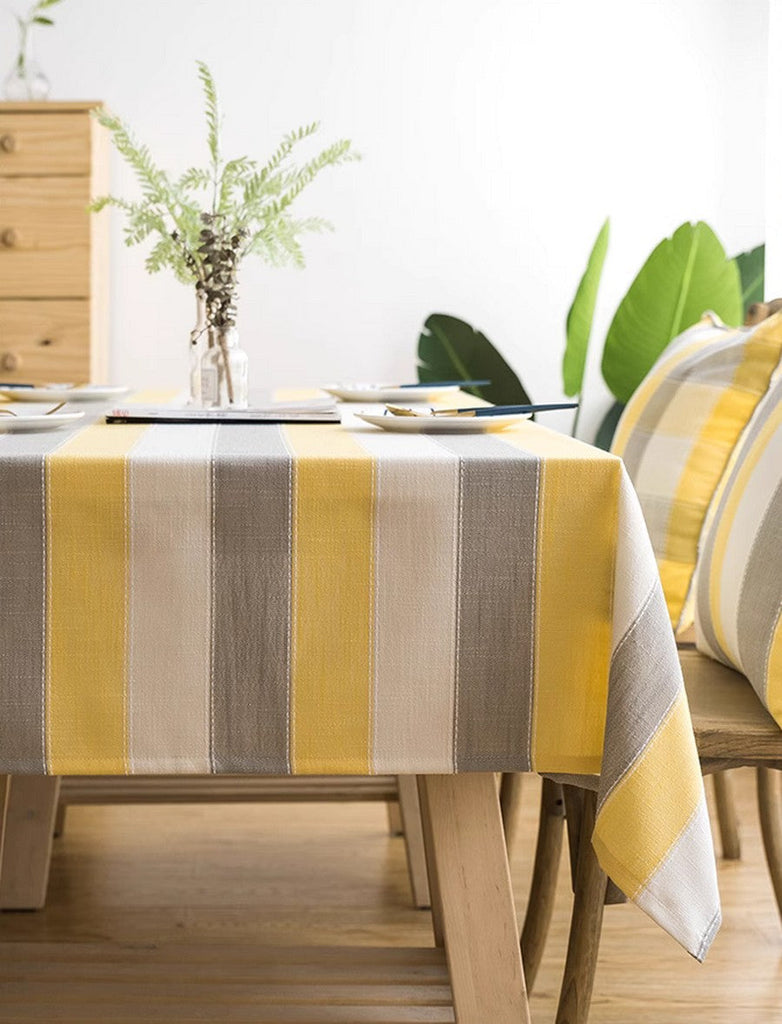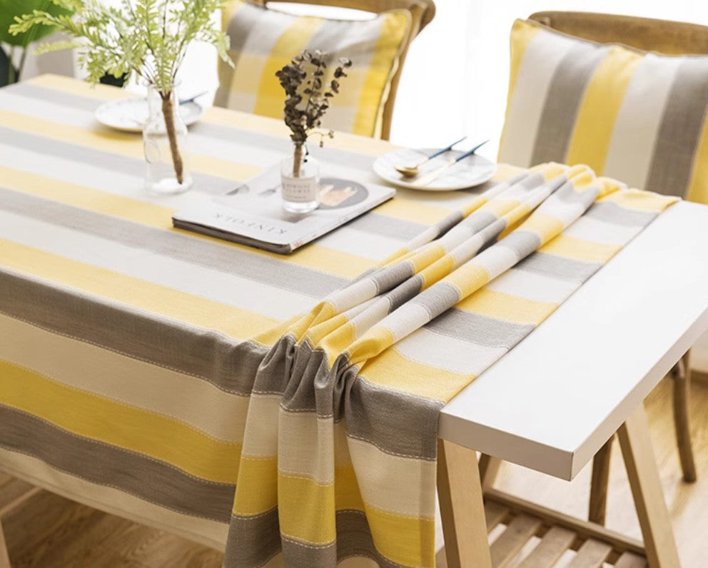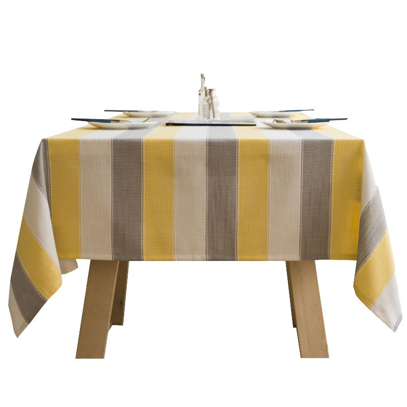 Kitchen Rectangular Table Covers, Yellow Stripe Cotton and Linen Tablecloths, Rectangular Tablecloth for Oval Table, Modern Table Cloths for Dining Room-Paintingforhome