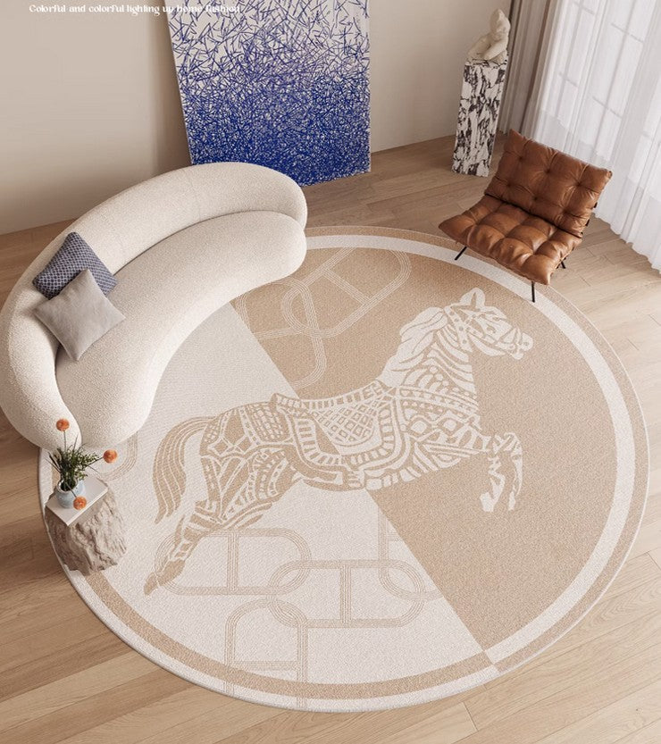 Circular Rugs for Bedroom, Modern Rugs for Dining Room, Horse Modern Rug Ideas for Living Room, Abstract Contemporary Round Rugs for Dining Room