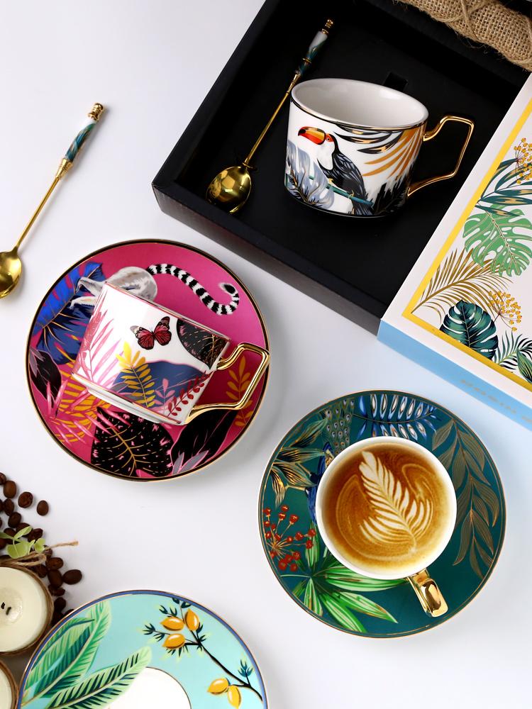 Each set includes 1* coffee cup, 1*stirring spoon and 1 saucer in gift box, 7.4 ounce (220ml) capacity ceramic coffee mugs,perfect for serving espresso, cappuccinos, lattes or tea. It has enough space for coffee with milk bubbles, avoiding spilling.