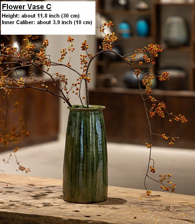Porcelain Flower Vases, Ceramic Bouquet Vases, Green Flower Vases on Table, Dining Table Centerpiece, Handmade Water Holding Flower Vase
