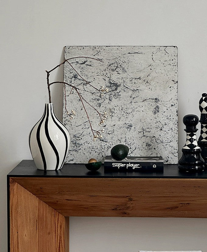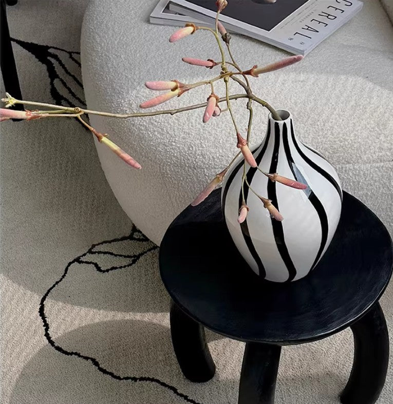 Porcelain Flower Vases, Modern Flower Vases on Table, Water Holding Flower Vases, Black and White Striped Ceramic Vase