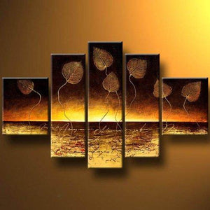 Abstract Canvas Paintings, Modern Abstract Painting, Golden Leaves Painting, Canvas Painting for Dining Room, Modern Wall Art Paintings
