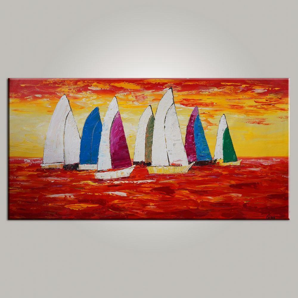 Abstract Art, Painting for Sale, Contemporary Art, Sail Boat Painting, Canvas Art, Living Room Wall Art, Modern Art