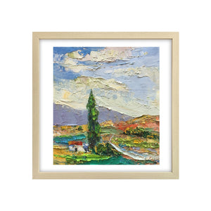 Landscape Painting, Cypress Tree Painting, Small Oil Painting, Heavy Texture Oil Painting-Paintingforhome