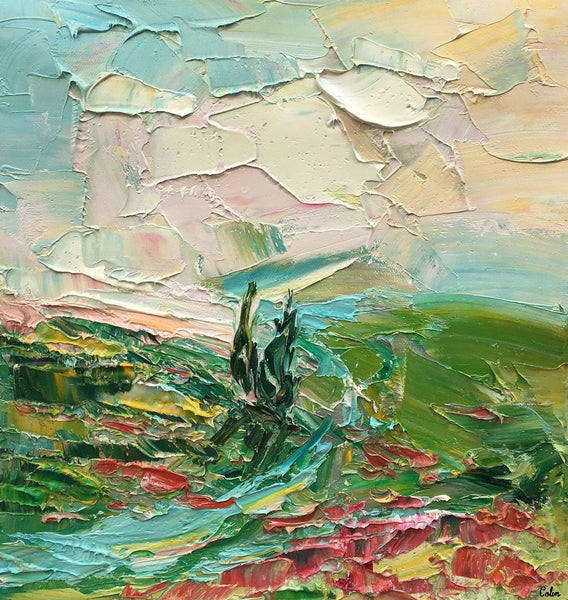 Heavy Texture Oil Painting, Small Oil Painting, Abstract Landscape Art Painting, Original Artwork, 12X12 inch