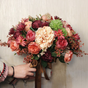 Amazing Artificial Floral Arrangement for Dining Room, Large Bunch of Autumn Flowers Arrangement, Peony Faux Silk Floral Bouquet Table Centerpiece-Paintingforhome
