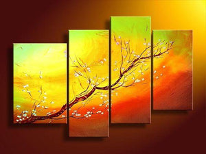 Branch of Plum Tree Flower, 4 Piece Canvas Art, Painting for Sale, Bedroom Canvas Painting-Paintingforhome