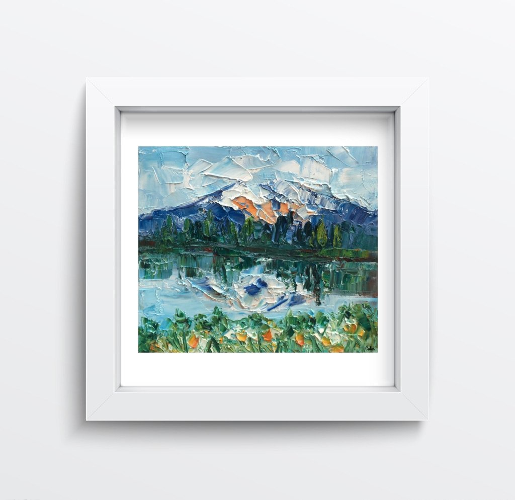 Heavy Texture Oil Painting, Mountain Lake Painting, Small Oil Painting, Abstract Painting,10X12 inch-Paintingforhome