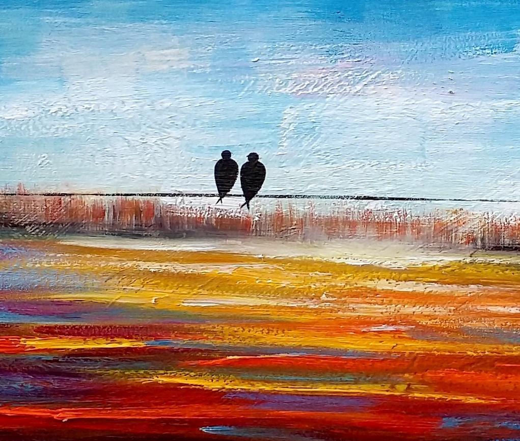 Original Abstract Painting, Love Birds Painting, Dining Room Wall Art Paintings, Modern Abstract Painting, Simple Canvas Painting, C