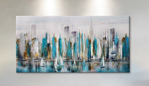 Sail Boat Painting, Cityscape Painting, Abstract Landscape Art, Wall Art Paintings, Simple Modern Paintings for Living Room