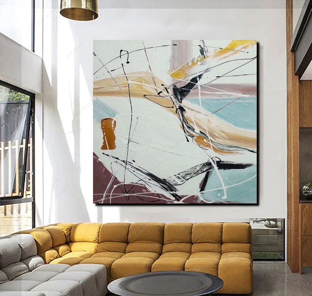 Simple Acrylic Paintings, Bedroom Modern Wall Art, Modern Contemporary Art, Large Painting Behind Sofa, Acrylic Canvas Painting