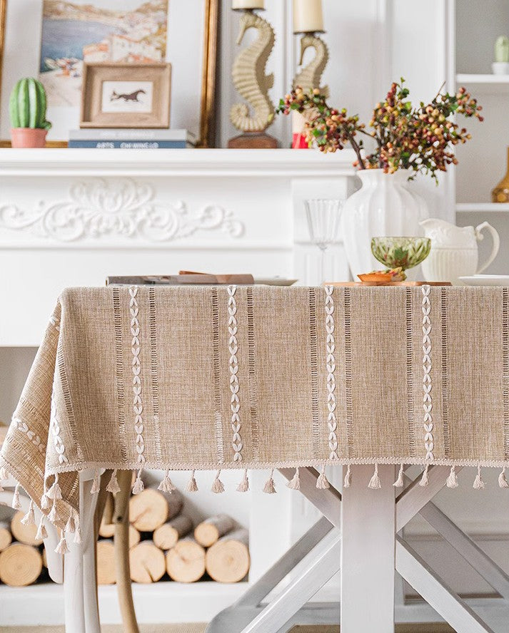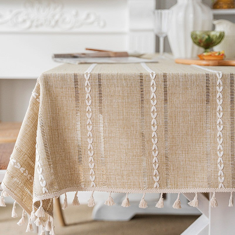 This unique natural flax table cloth is suitable for dining table, tea table, piano cover, bedstand, etc.