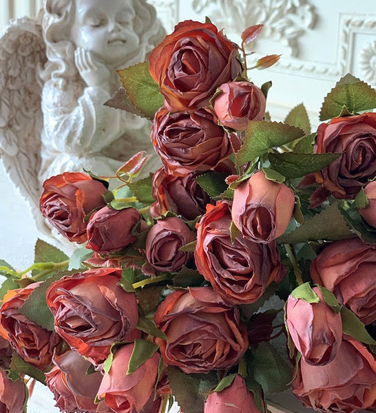 Size: 12 branches of rose flowers, each stem about 16 inch (40 cm) tall and have 3 flowers and 2 flower buds