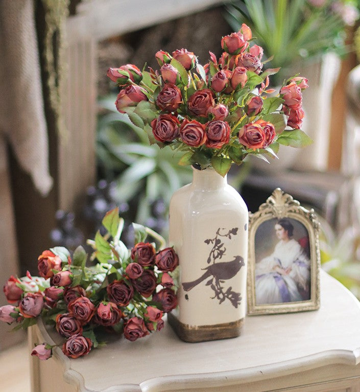 Artificial Floral for Bedroom, 12 Branches of Rose Flowers, Botany Plants, Rose Flower in Vase, Simple Flower Arrangement Ideas for Home Decoration-Paintingforhome