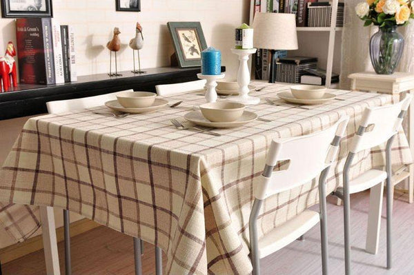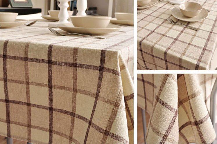 Rustic Wedding Tablecloth, Checked Tablecloth for Home Decoration, Table Cover, Beige Color Checkerboard Linen Tablecloth
