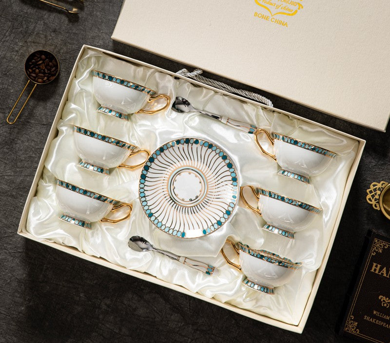 Unique Tea Cup and Saucer in Gift Box, Elegant British Ceramic Coffee Cups, Bone China Porcelain Tea Cup Set for Office, Green Ceramic Cups