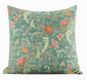 Garden Flowers Pattern Decorative Throw Pillows, Geometric Contemporary Square Modern Throw Pillows for Couch, Large Green Throw Pillow for Interior Design