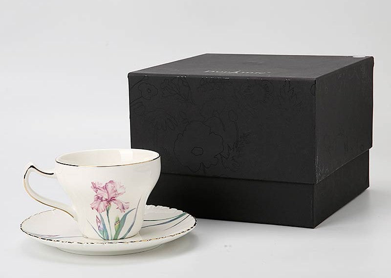 Iris Flower British Tea Cups, Beautiful Bone China Porcelain Tea Cup Set, Traditional English Tea Cups and Saucers, Unique Ceramic Coffee Cups in Gift Box