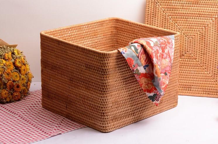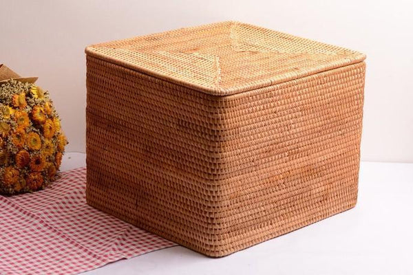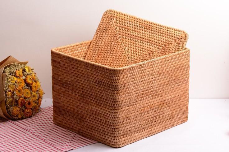 Large Storage Basket for Living Room, Storage Basket for Clothes, Woven Rattan Storage Baskets, Rectangular Storage Basket, Storage Basket with Lid-Paintingforhome