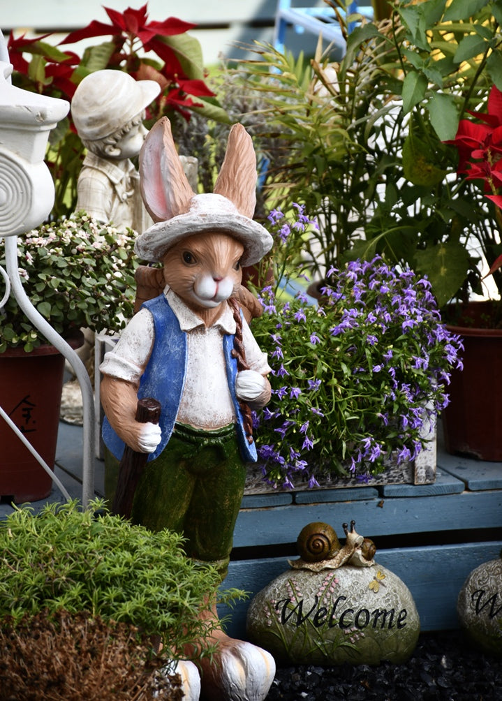 Male Rabbit with Flowerpot Size: 8.3 x 9.4 x 26 inch (21 x 24 x 67 cm)