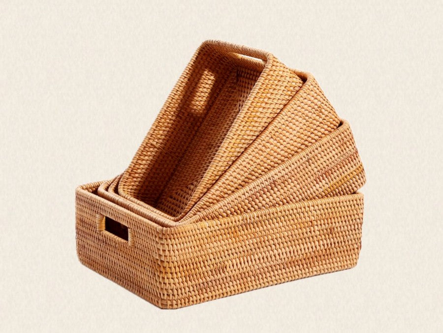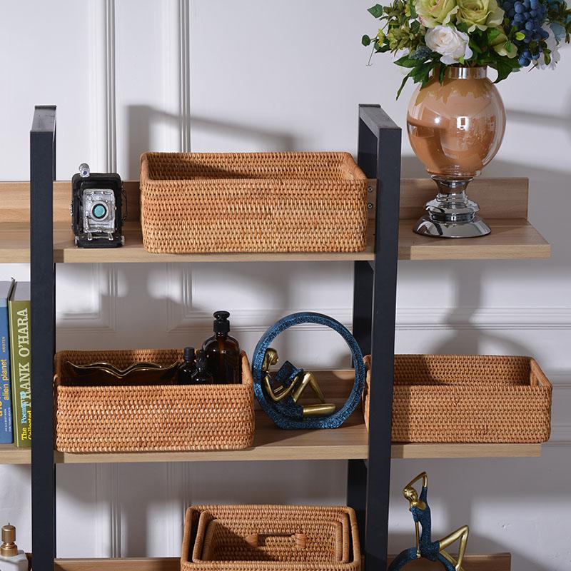 Large Woven Rattan Storage Basket, Rectangular Basket with Handle, Storage Baskets for Living Room