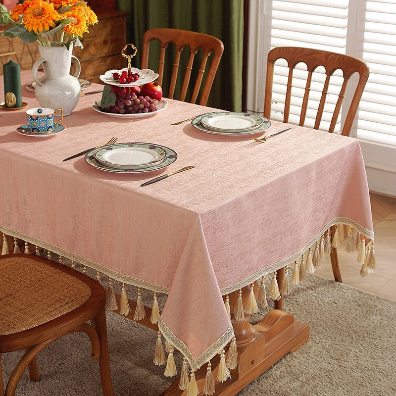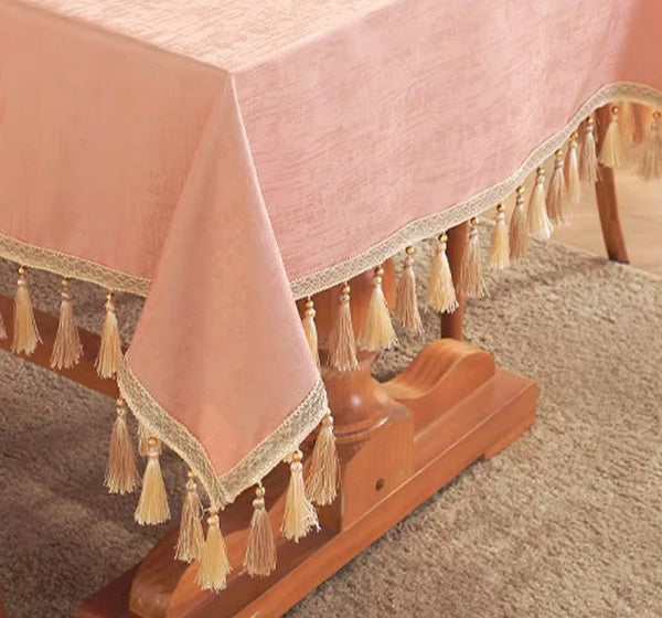 Pink Fringes Tablecloth for Home Decoration, Modern Rectangle Tablecloth, Large Simple Table Cover for Dining Room Table, Square Tablecloth for Round Table