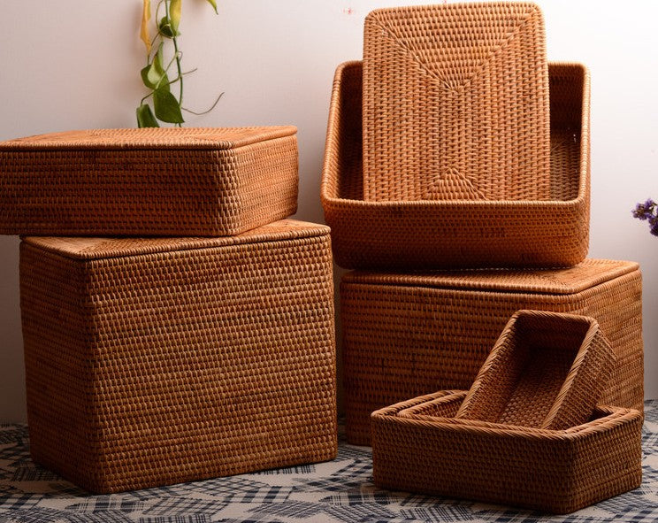 Extra Large Woven Rattan Storage Basket for Bedroom, Rattan Storage Baskets, Rectangular Woven Basket with Lid, Storage Baskets for Shelves