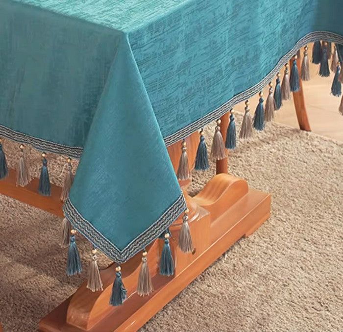 Green Fringes Tablecloth for Home Decoration, Square Tablecloth for Round Table, Modern Rectangle Tablecloth, Large Simple Table Cloth for Dining Room Table